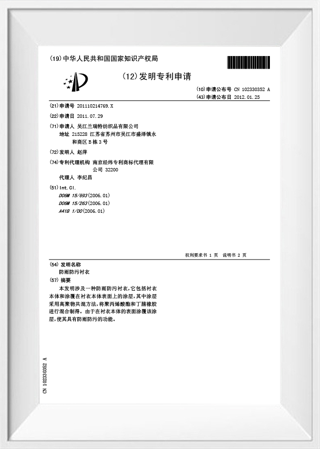 Su Geçirmez ve Sıçrama Önleyici Gömlek için Buluş Patenti